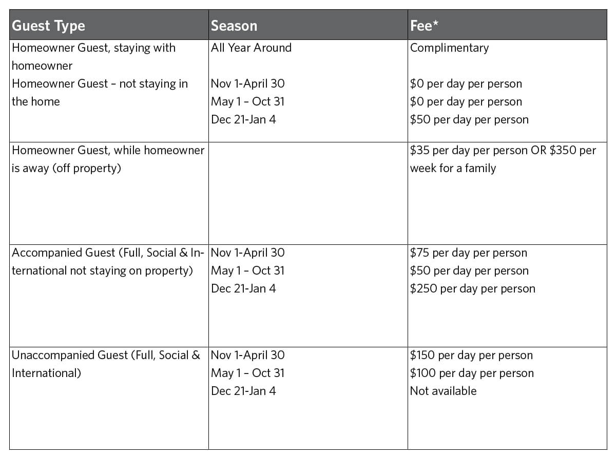 - There is no restriction on homeowner-guest amenity use when guests are staying with a homeowner.